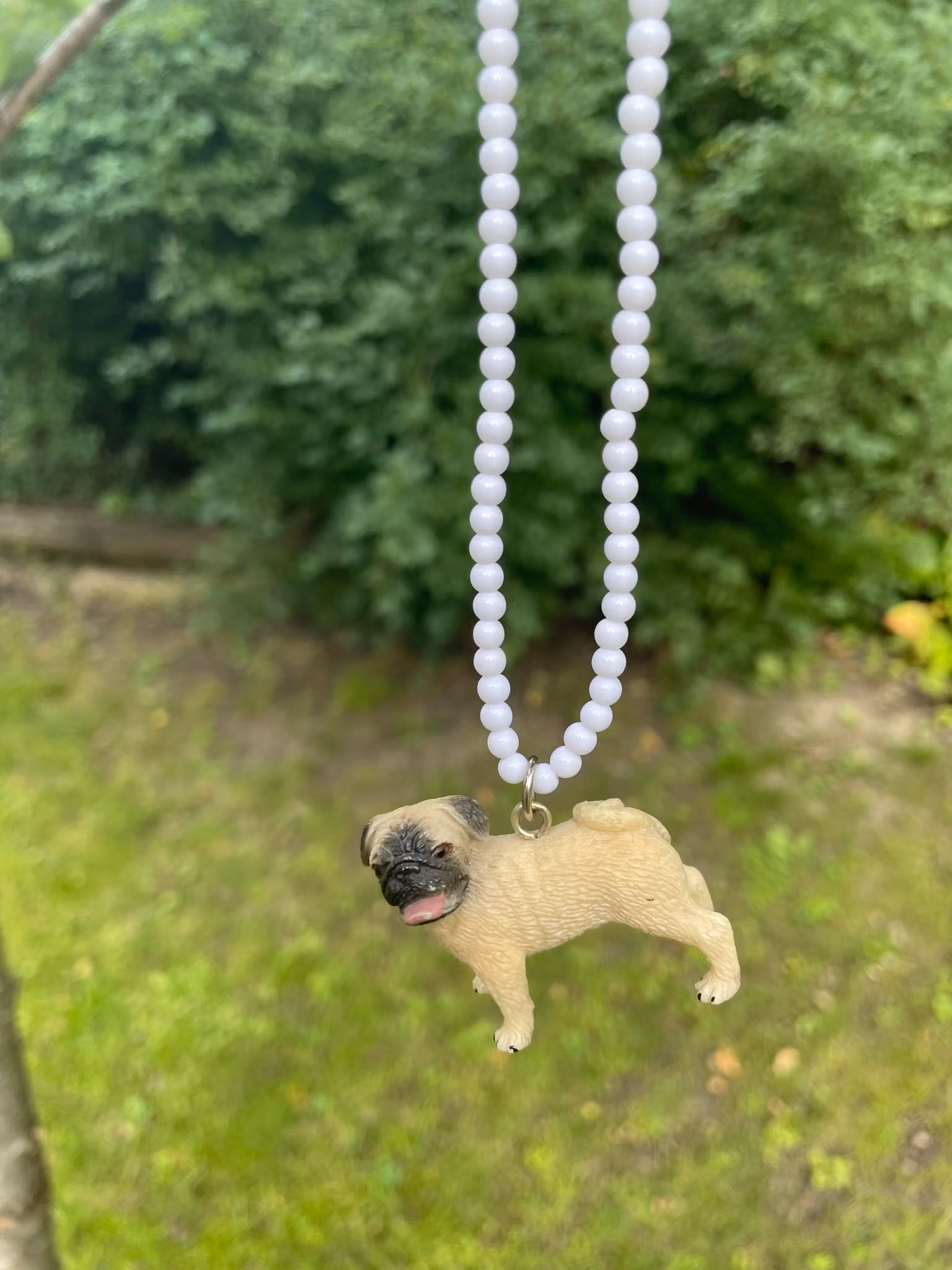 Mops 0 kr 200 kr Ett roligt halsband för den som älskar mopsar. Halsbandet mäter 80 cm. Flera populära produkter Silver med svala 350 kr Silver med fyrklöver 350 kr Måndagssmurf 200 kr Rådjur 200 kr Silverhalsband med fyrklöversberlock 250 kr Strössel med berlock 199 kr