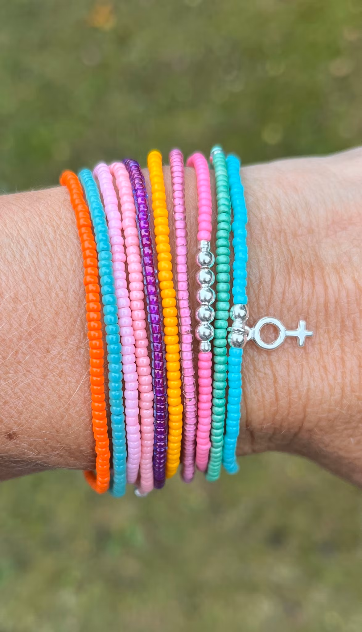 10-pack bello karamello med kvinnotecken 0 kr 349 kr En härlig mix av armband i olika färgglada nyanser. Inget armband är likadant. Småpärlor i glas och detaljpärlor och kvinnoberlock i sterlingsilver.Armbanden är i storlek medium och passar en handled som mäter 15-16,5 cmm. Flera populära produkter Pride-armband🏳️🌈 50 kr Svart med silverhjärta 99 kr Oljefärgade småpärlor 49 kr Ljusorange med silverpärlor 79 kr Rött med silverhjärta 99 kr 6-pack armband, mörkrosa 199 kr