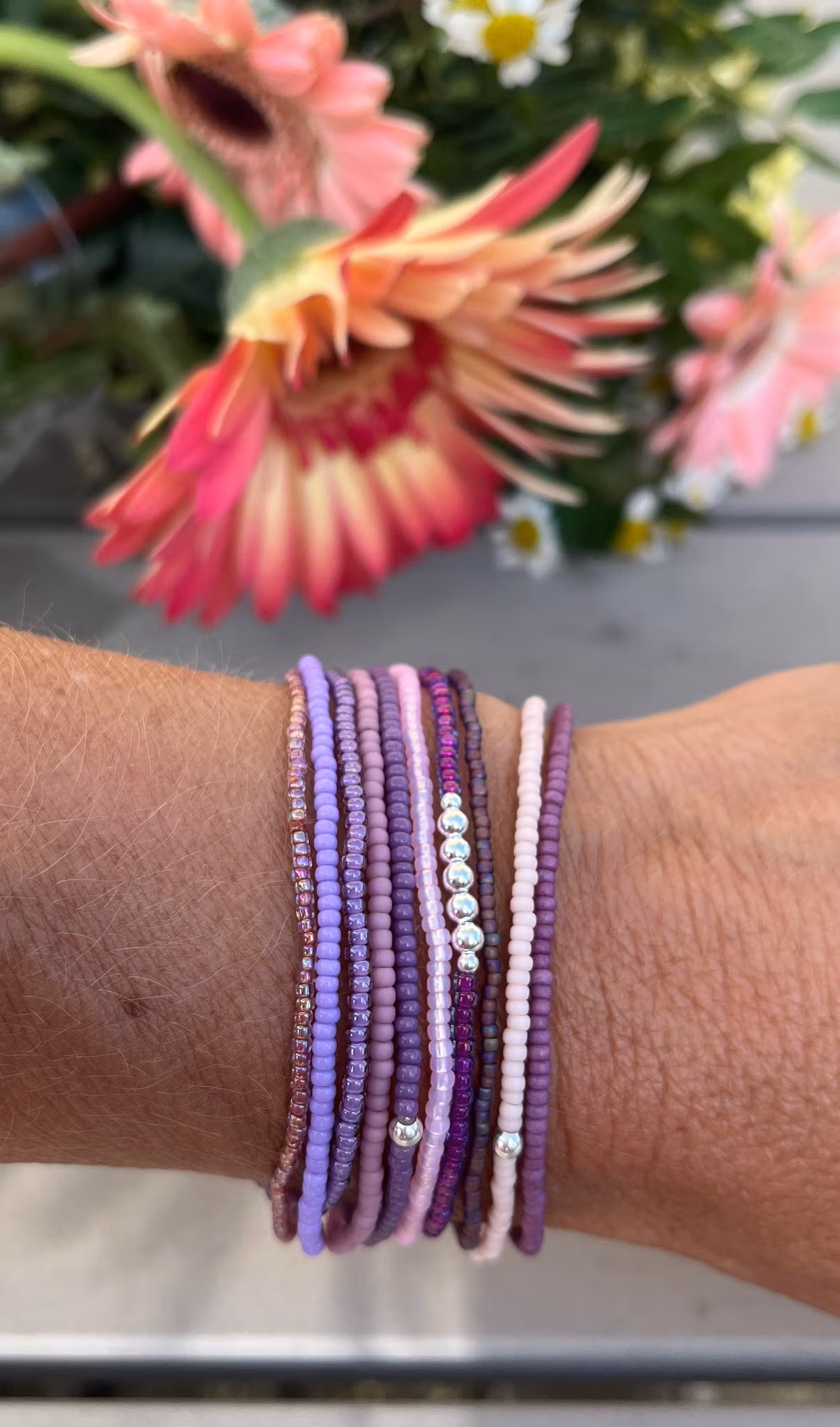 10-pack lila 0 kr 320 kr En härlig mix av armband i olika lila nyanser. Inget armband är likadant. Småpärlor i glas och detaljpärlor i sterlingsilver.Armbanden är i storlek medium och passar en handled som mäter 15-16,5 cmm. Flera populära produkter Regnbågsarmband 60 kr Metalicrosa med gul diamant 60 kr Enkelt, grönturkost 35 kr Enkelt, metalicrosa 35 kr Vitt med silverrör 79 kr Rött med silverhjärta 99 kr