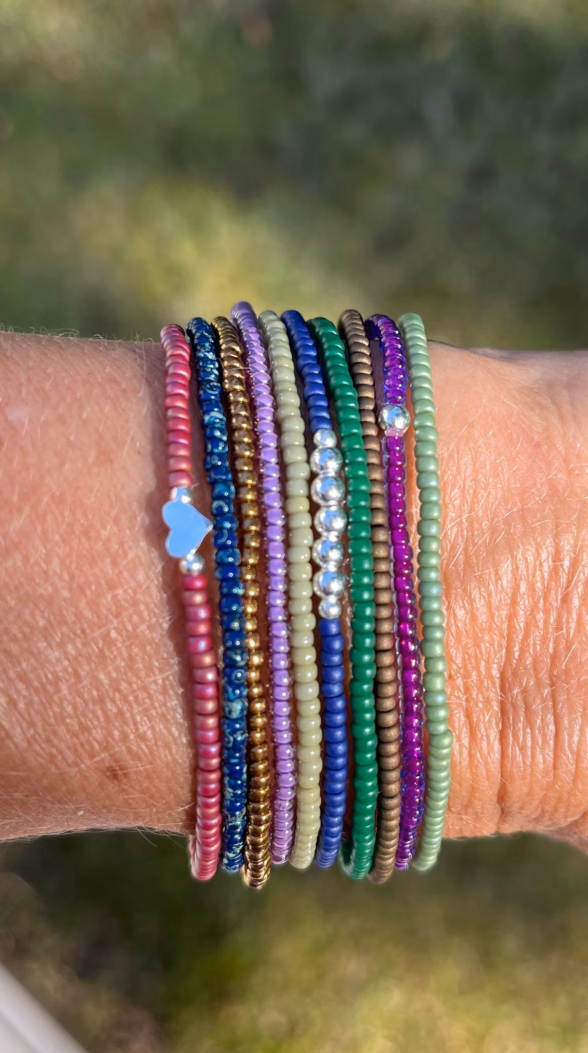 10-pack midnatt med hjärta 0 kr 349 kr En härlig mix av armband i olika nyanser. Inget armband är likadant. Småpärlor i glas och detaljpärlor i sterlingsilver.Dessa armband är i storlek medium och passar en handled som mäter 16-17 cm. Flera populära produkter Regnbågsarmband 60 kr Enkelt, grönturkost 35 kr Strössel 2.0 69 kr Lila med silver 79 kr Vitt med silverhjärta 99 kr Strössel med trollslända 79 kr
