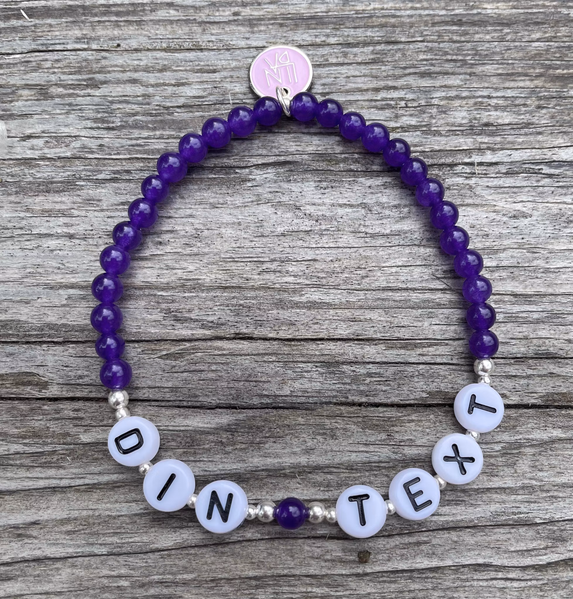 Ett fint armband med lila jadepärlor och detaljpärlor i silver.