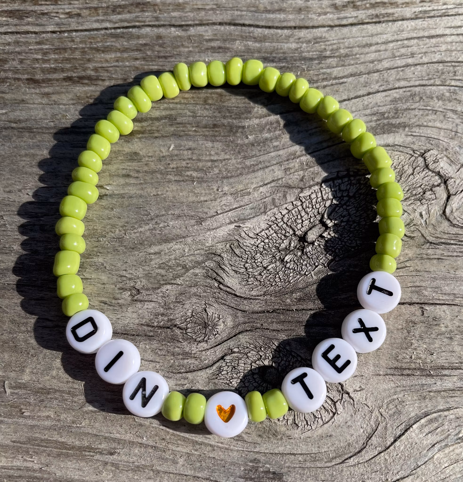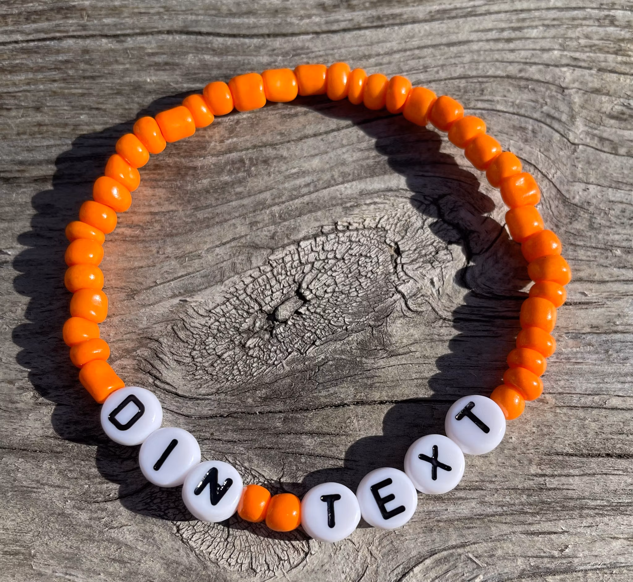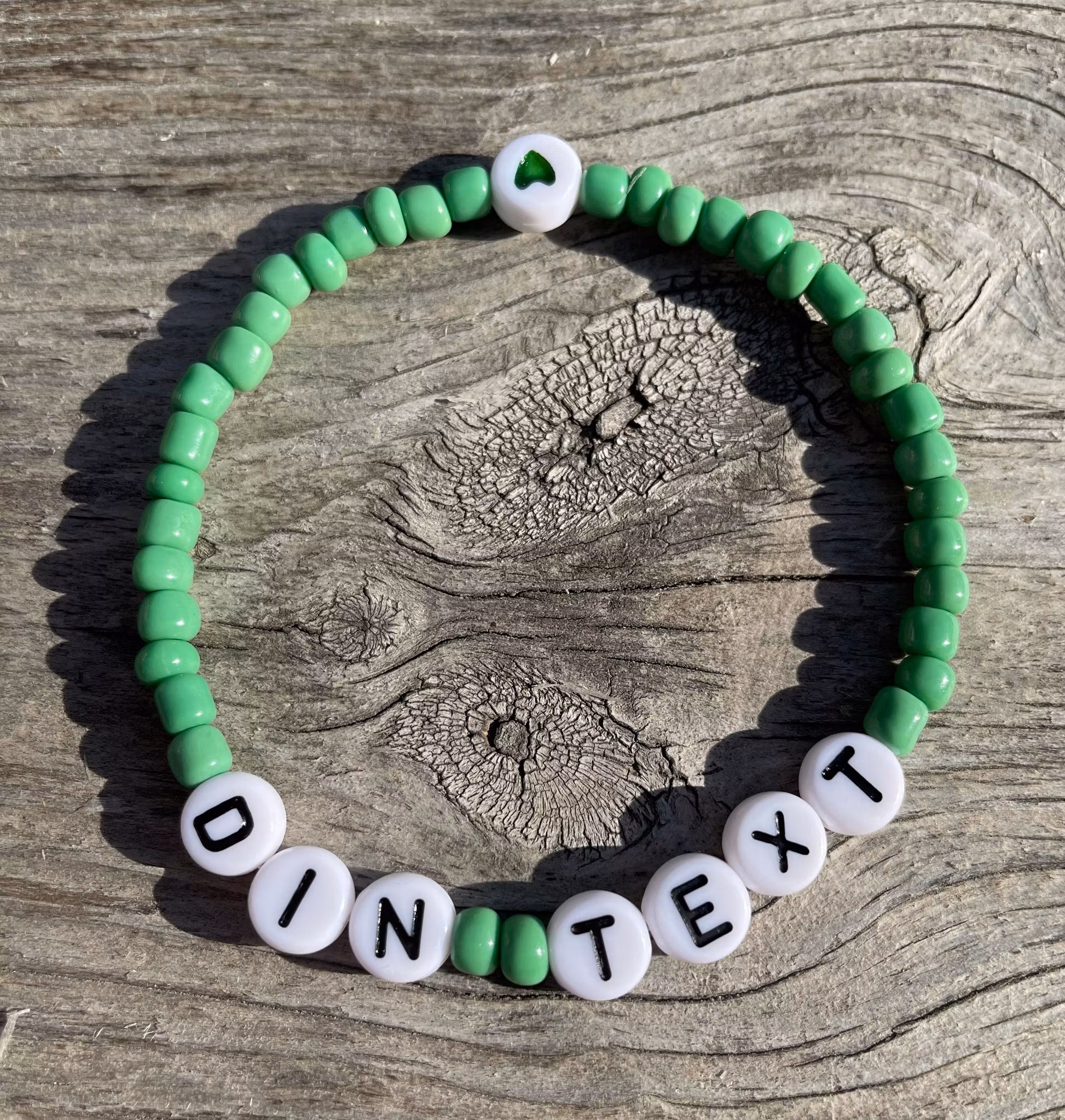Det enklaste av textarmband har du här! Inga brickor, inga småpärlor mellan bokstäverna. Passar alla - kvinnor, män och barn.