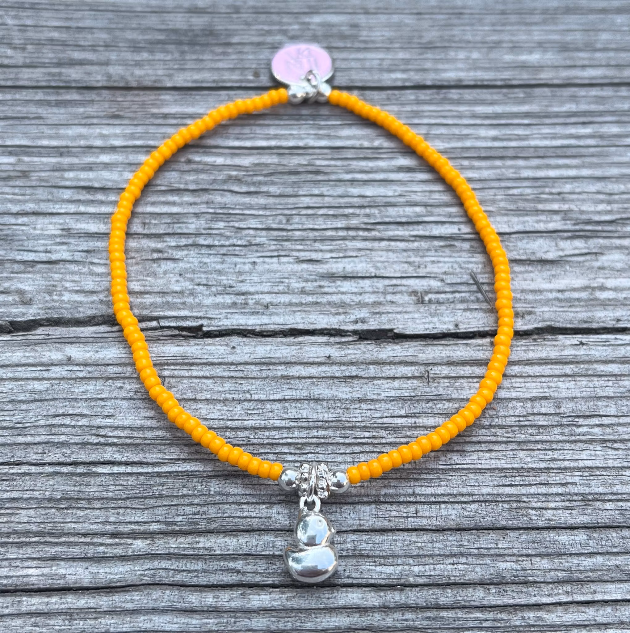 Ljusorangea småpärlor och berlock och detaljpärlor i sterling silver.