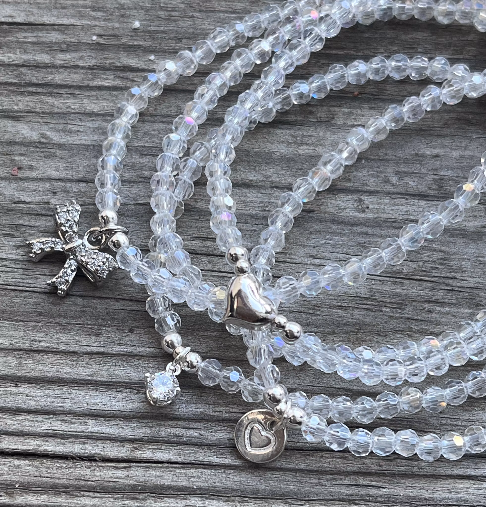 Som jag älskar dessa pärlor! De är gjorda i glas men slipade och behandlade så att de gnistrar när handleden rör sig. Det passar till allt!