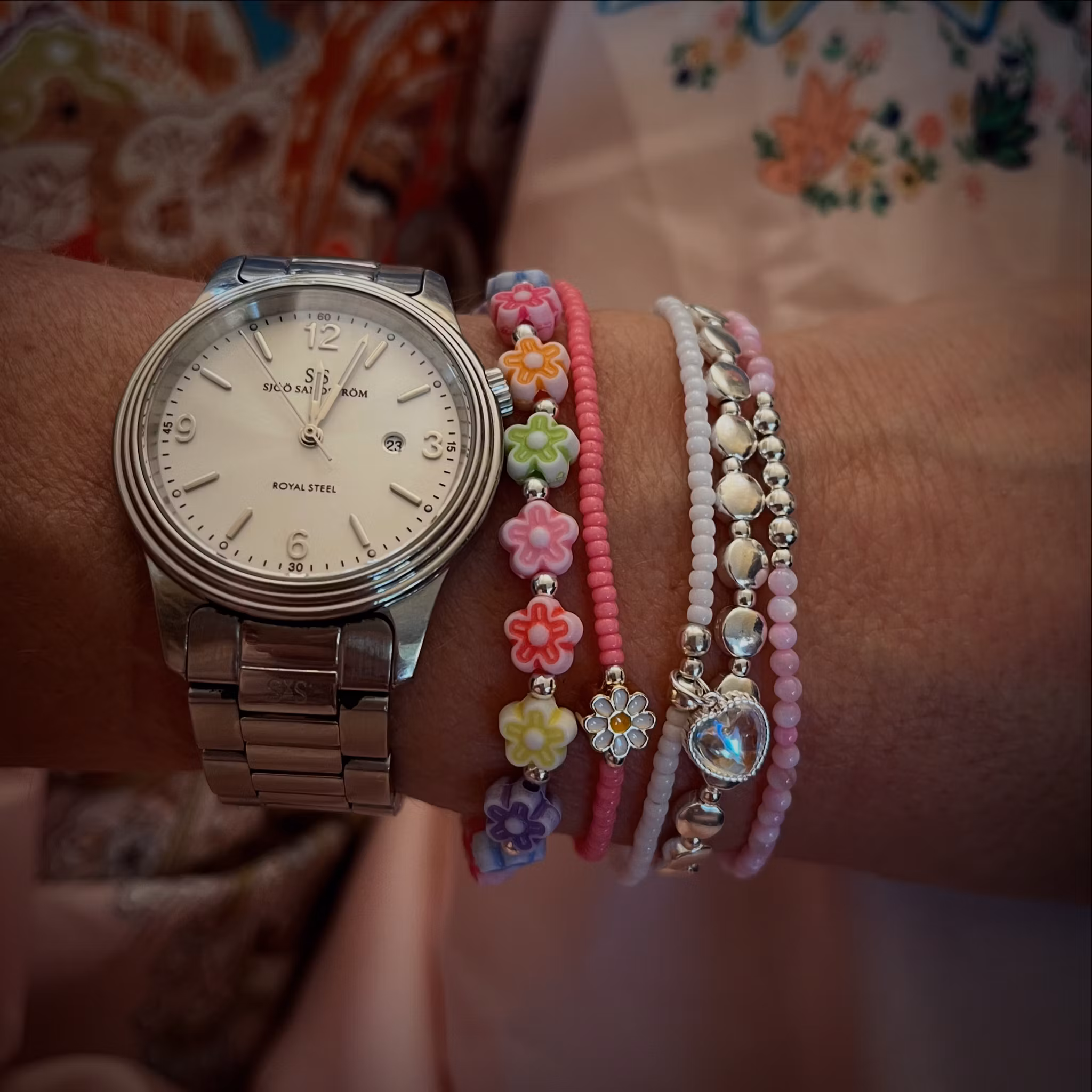 NĂ€, nu blommar detđž Storlek S M L 0 kr 120 kr Glada armband med blompĂ€rlor i plast och detaljpĂ€rlor i sterlingsilver. Storleksguide;S-17 cm (passar en handled som mĂ€ter 15-15,5 cm)M-18 cm (passar en handled som mĂ€ter 16-16,5 cm)L-19 cm (passar en handled som mĂ€ter 17-17,5 cm) Flera populĂ€ra produkter Grönmelerat 69 kr Iđ€ME, vitt 70 kr Iđ€ME, svart 70 kr Rosa tigeröga, enkelt 100 kr OljefĂ€rgade smĂ„pĂ€rlor 49 kr Frinally 69 kr