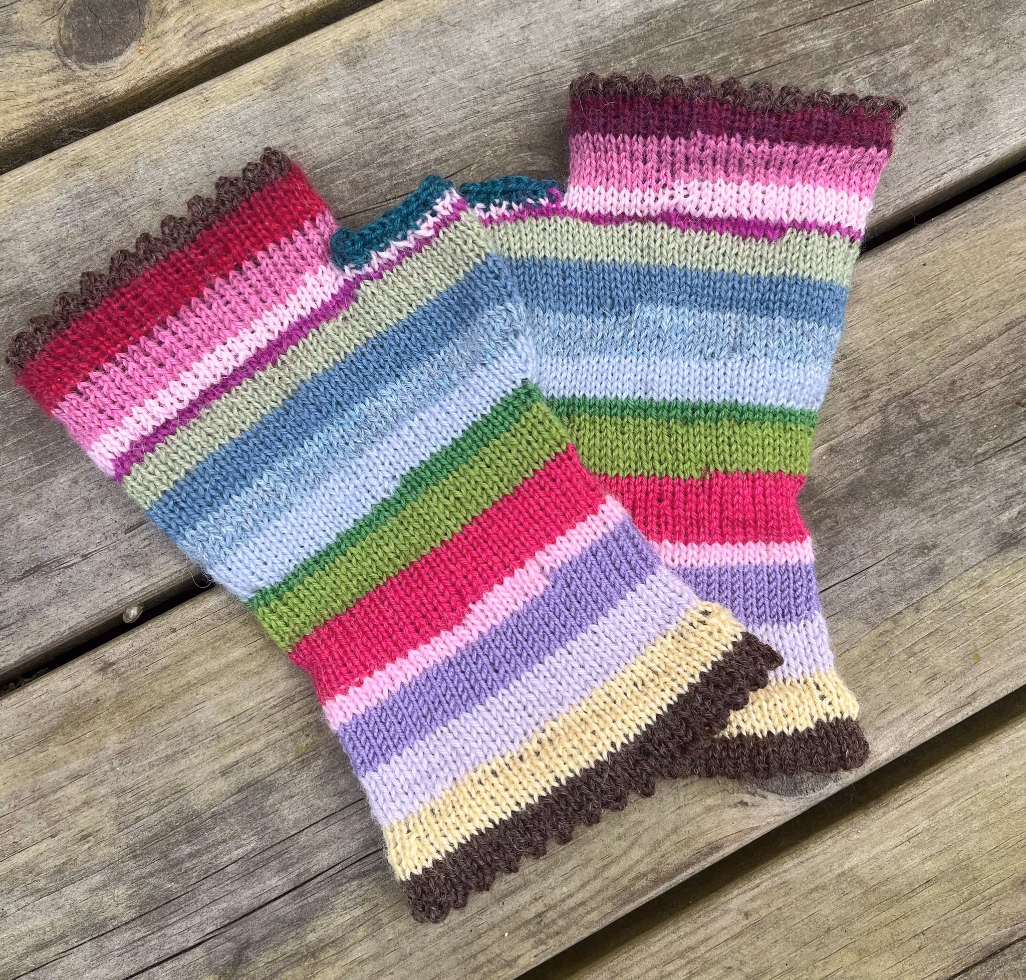 Det är viktigt att använda allt på ett garnnystan, tycker jag. Därför föddes dessa unika restgarnshalvvantar. Varma och mjuka och passar en vuxen kvinnas händer.