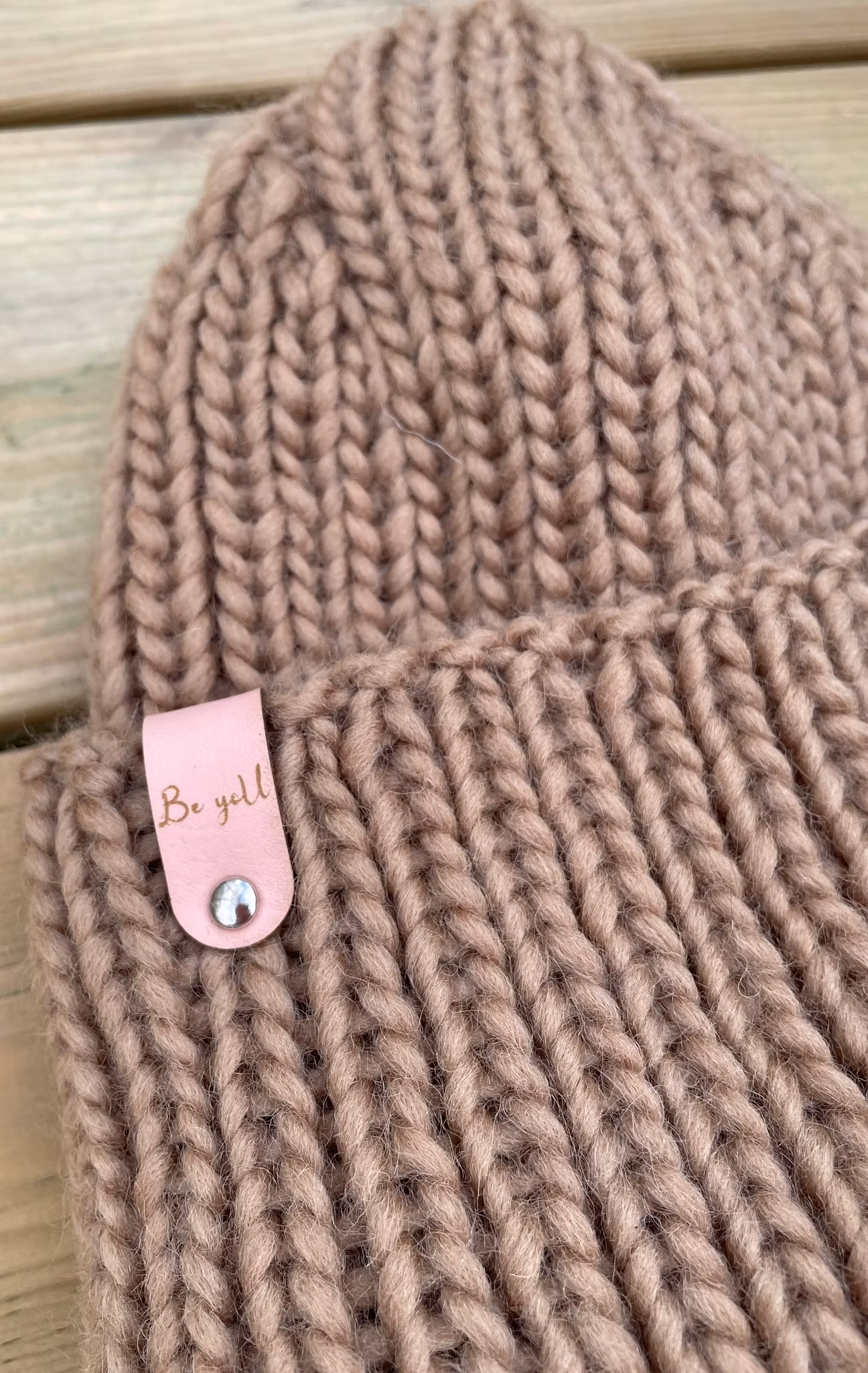Handstickade mössor i mjuk och varm ull. De passar alla huvuden, skulle jag våga påstå. Kanten viks upp så mycket som du önskar (men mössan går även att bära utan uppvik - men då blir det en lång mössa;-) På varje mössa sitter en label i läderimitation där det står "Be yoU". Mössorna finns i regnbågens alla färger, men bara en av varje.