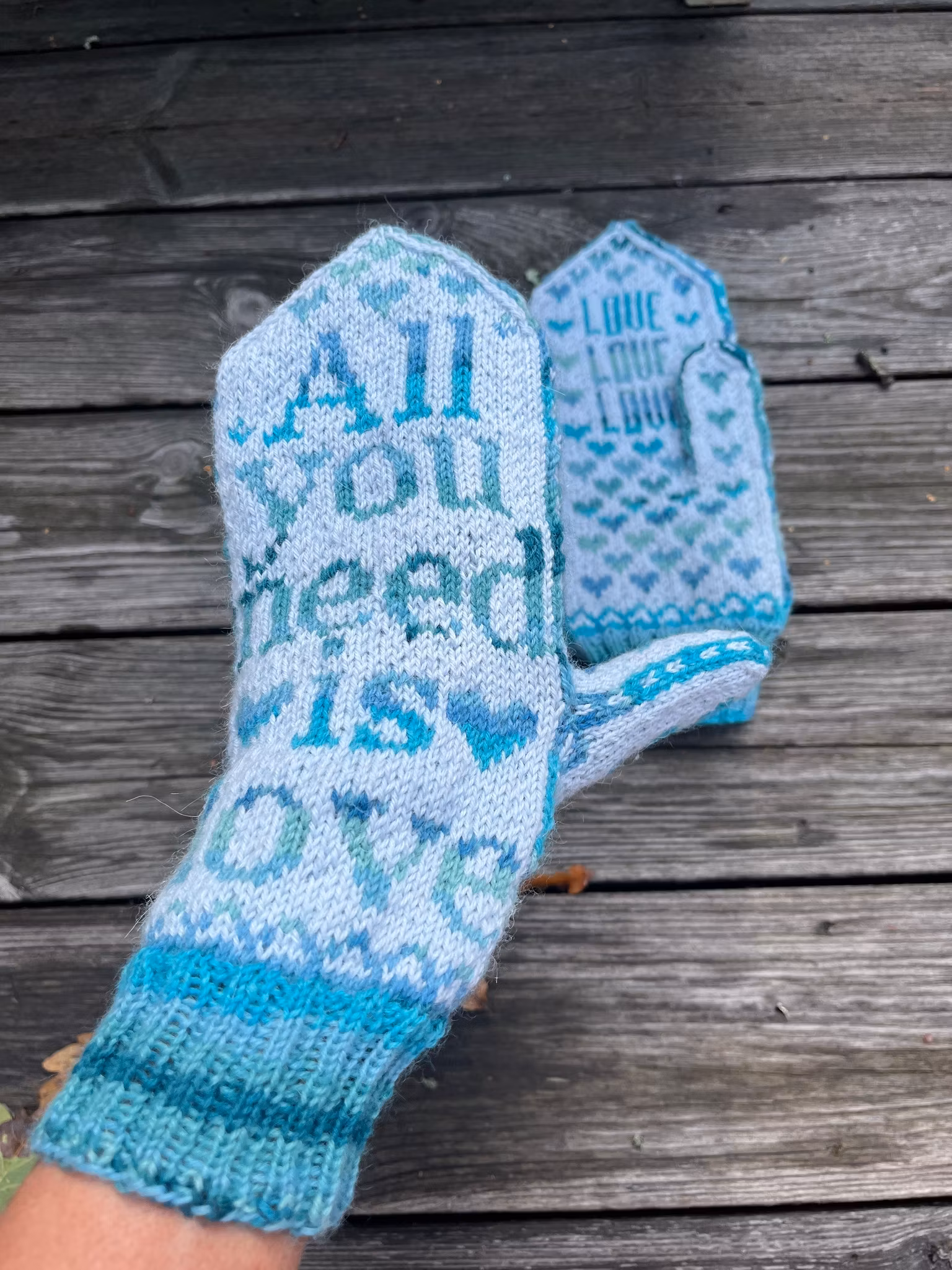 All you need is love, turkosa Produkten Ă€r tyvĂ€rr slut i lager. SĂ€g det med ett par vantar!đ©”De Ă€r kĂ€rleksfullt handstickade i ett varmt mjukt garn och passar en vuxen kvinnas hĂ€nder. Flera populĂ€ra produkter Be present, not perfect 450 kr All you need is love, varmröda med vita hjĂ€rtan 449 kr Prickeliprick med grĂ„a flĂ€tade muddar 449 kr Prickeliprick med turkosmelerade muddar SlutsĂ„ld Sniglar, blĂ„bĂ€r och nĂ„gra ankor 449 kr Glassvantar, rosa 449 kr